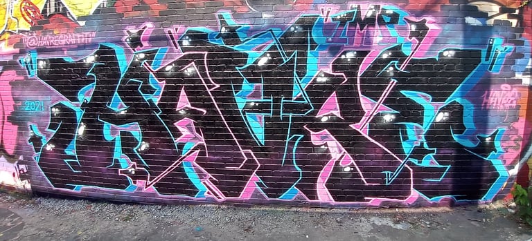 Many people find graffiti names—or “tags”—hard to read because graffiti artists often use highly stylized lettering, unique shapes, and creative flourishes that prioritize artistic expression over legibility. The goal is to create a signature style that stands out and is recognizable to other artists, rather than to the general public.