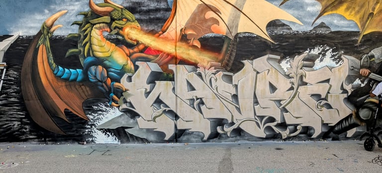 A strong graffiti piece isn’t just about technical skill—it’s also about creativity, composition, and developing a unique style. Our artist HAVRE is an experienced graffiti artist who has spent decades perfecting his craft and personal style. For beginners, it can be tough to get the paint to behave the way they want, and mistakes can be hard to fix. But with dedication and practice, artists can turn a blank wall into a striking work of art.