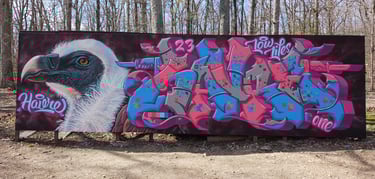 Graffiti artists use spray paint because it’s fast, versatile, and ideal for creating bold, eye-catching artwork on large surfaces. Spray paint dries quickly, allowing artists to layer colors and work efficiently, especially in outdoor or public spaces. The aerosol can makes it easy to cover big areas, create smooth gradients, and achieve a variety of effects—from fine lines to broad strokes—by switching out different spray caps. This flexibility, combined with the vibrant colors and durability of spray paint, makes it the perfect tool for graffiti artists who want to make a strong visual impact. HAVRE Graffiti has had decades of experience working with spray paint, and has had the pleasure of being asked to teach young artists in the art of aerosol painting.