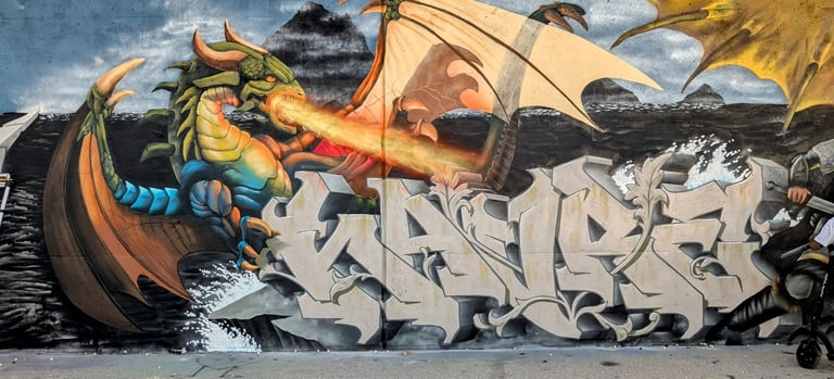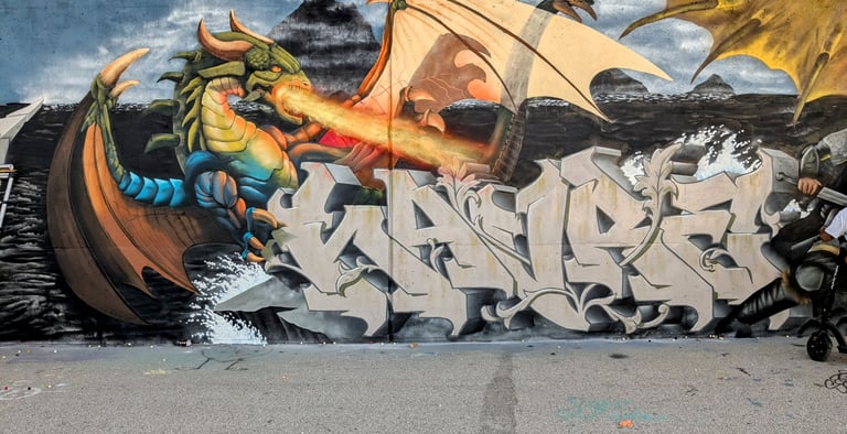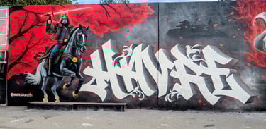 A strong graffiti piece isn’t just about technical skill—it’s also about creativity, composition, and developing a unique style. Our artist HAVRE is an experienced graffiti artist who has spent decades perfecting his craft and personal style. For beginners, it can be tough to get the paint to behave the way they want, and mistakes can be hard to fix. But with dedication and practice, artists can turn a blank wall into a striking work of art.