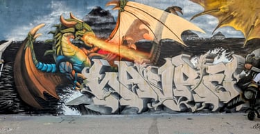 Graffiti is a form of visual art that involves creating lettering, sometimes with images and designs, on surfaces in public or private spaces, typically using spray paint, markers, or other materials. It originated as a way for artists to express themselves, share messages, and leave their signature (“tag”) in urban environments. Graffiti can range from a simple word (their graffiti name/tag), to complex, colorful murals and large-scale works of art. While it was once seen mainly as vandalism, graffiti is now widely recognized as an influential art movement that brings creativity, energy, and unique character to cities and communities around the world.
