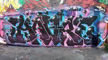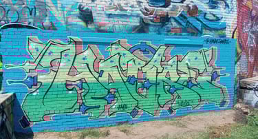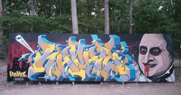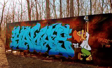 These stylized letters can be stretched, twisted, overlapped, or filled with extra details, making them look more like abstract art than regular handwriting. For those outside the graffiti community, this can make the names look like a secret code. Over time, artists develop their own visual language, and part of the fun and challenge is in deciphering and appreciating these unique signatures. As you can see in the gallery, HAVRE's graffiti tag (lettering) takes on varying styles and elements throughout his graffiti career-but they all say "HAVRE."
