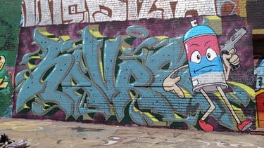 Spray painting a good graffiti piece is much harder than it looks. It takes a lot of skill, practice, and control to create clean lines, smooth color blends, and balanced designs—especially on a large wall. Artists must master different spray caps, pressure control, and techniques for layering and shading. Planning a piece, sketching the design, and working quickly (sometimes outdoors or in challenging conditions) adds to the challenge.